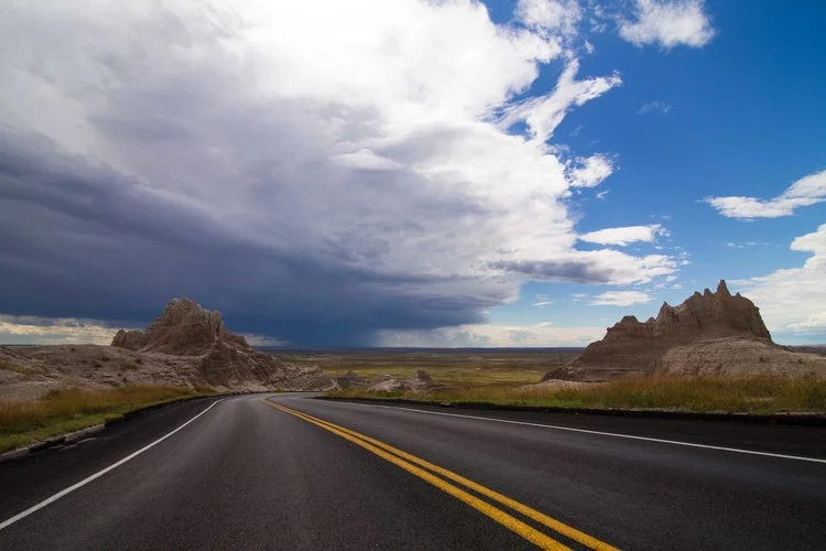 This is a single-day car road trip where you wake early and leave before dawn. You've packed snacks, water, and your smartphone GPS tell you exactly which roads to follow. The gas tank is full, so you won't need to stop. Just leaving town you see a beautiful sunrise. Just after sunrise, a morning shower. By noon it's baking hot. Early afternoon brings a thunderous deluge with lightning and sheets of rain. By mid-afternoon, you arrive at your destination. The sun is shining. You gladly step out of the car, where you've been shielded from the earlier rains and baking temps.